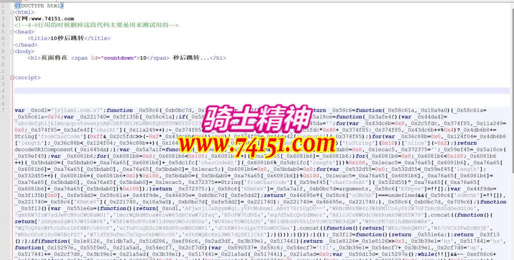 我说一下逻辑:当黑到别人网站的权限时,(至于怎么黑,就得看你的能力了,我会用我的网站做视频的)然后去他的运行的首网页,通常都是index.html,index.php,index.aspx等文件,加一个js的外链,在把我的加密JS,去对言程序里找一个隐蔽点的地方,在隐藏,到时当他的网站,打开就会等10秒,自动跳到你指点的rul,引流,做SEO非常6B。