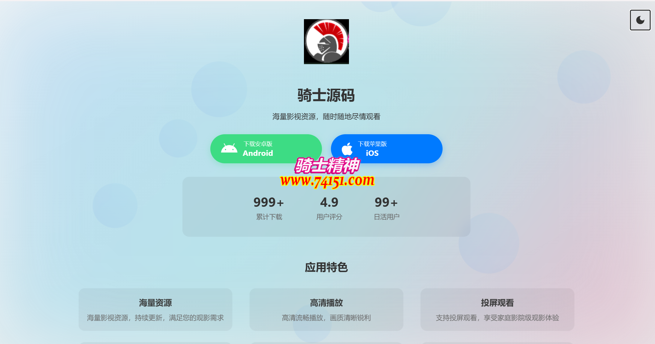 非常不错的一款APP软件下载介绍页源码,带有iOS和安卓下载入口,自适应手机、电脑端
